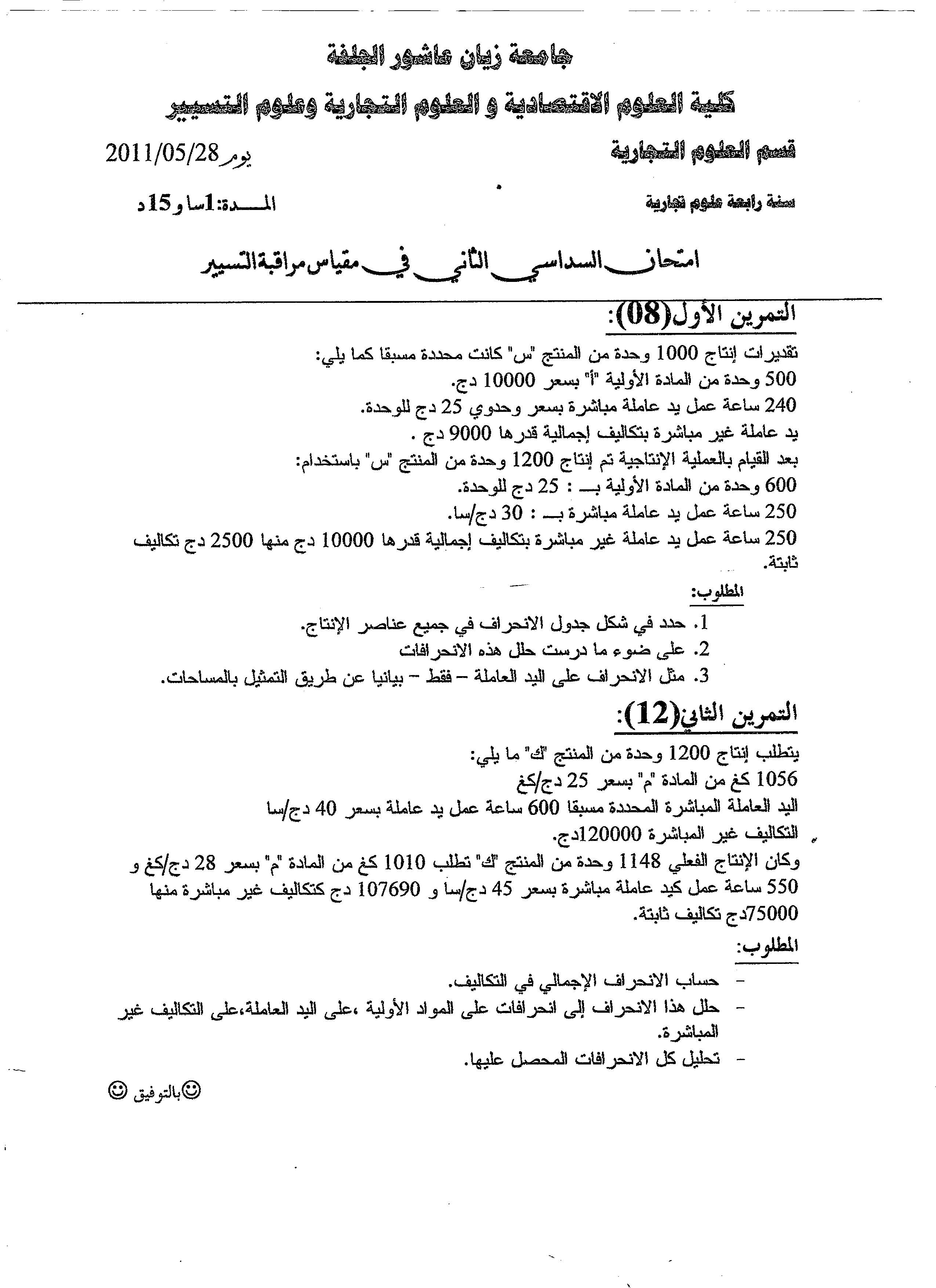 ـ مراقبة التسيير ـ 2010/2011 الجلفة امتحان السداسي الثاني